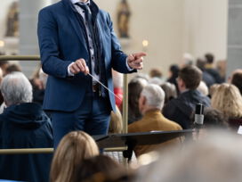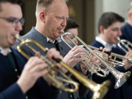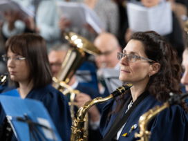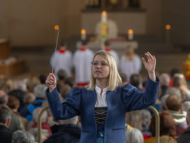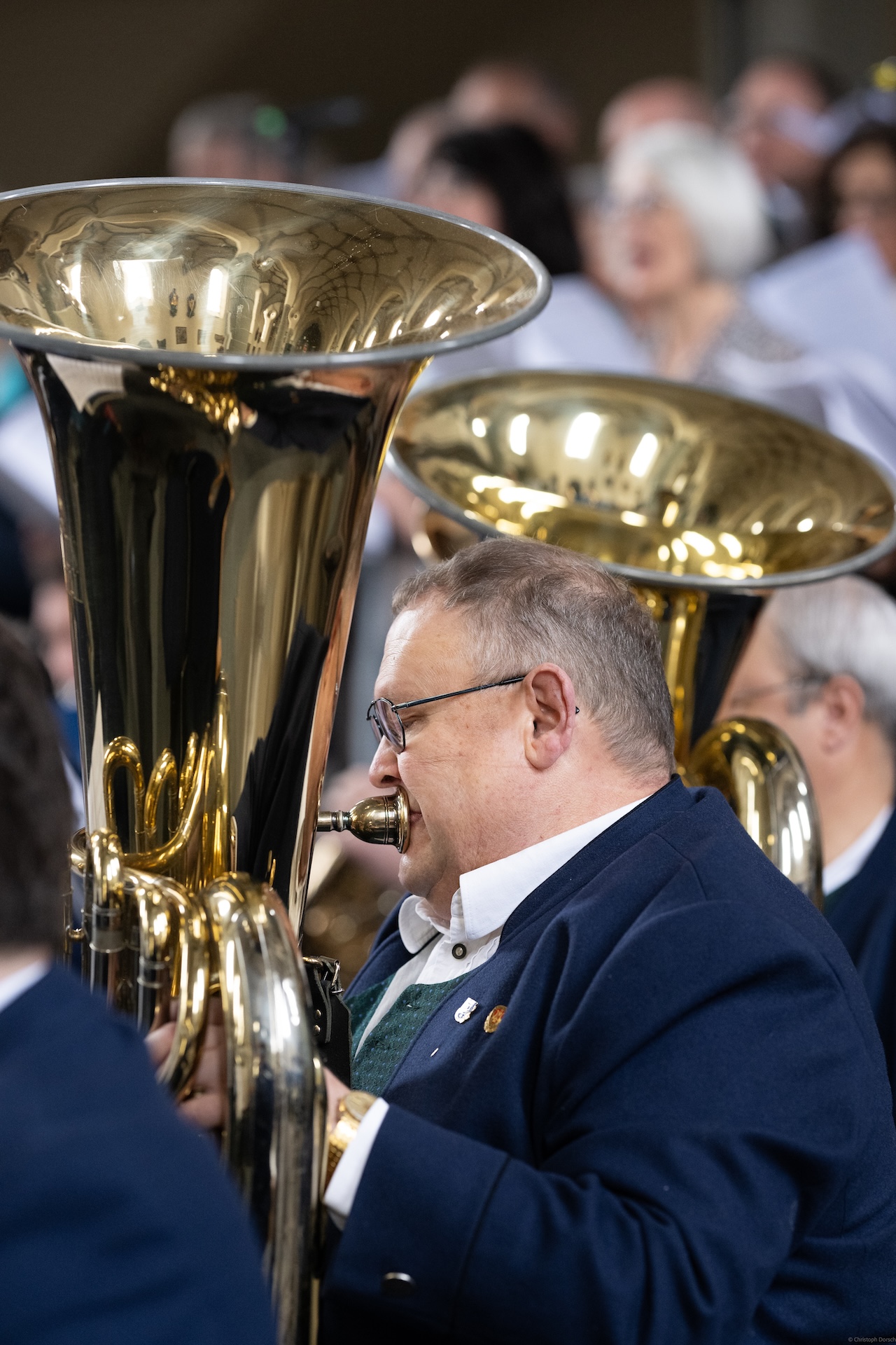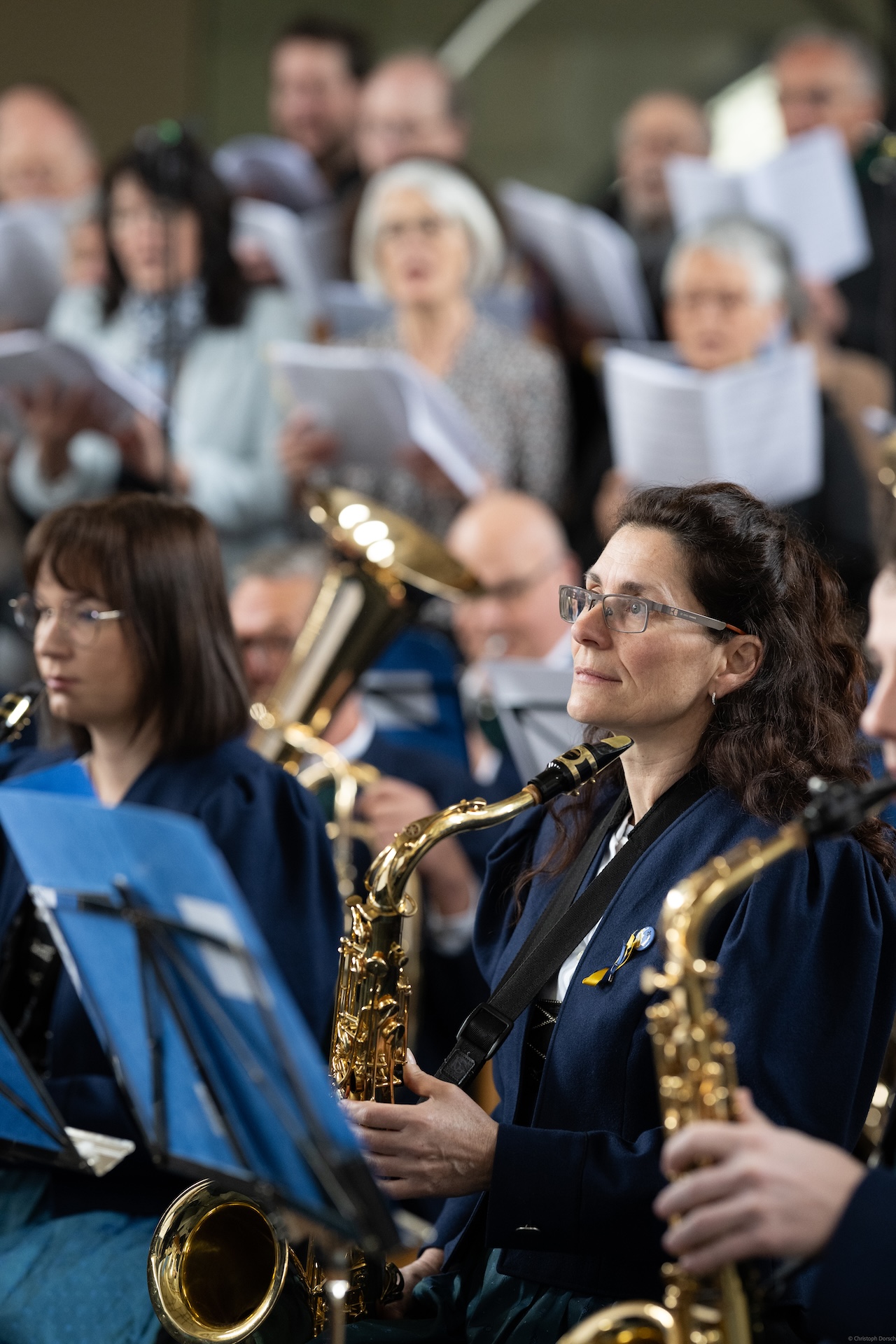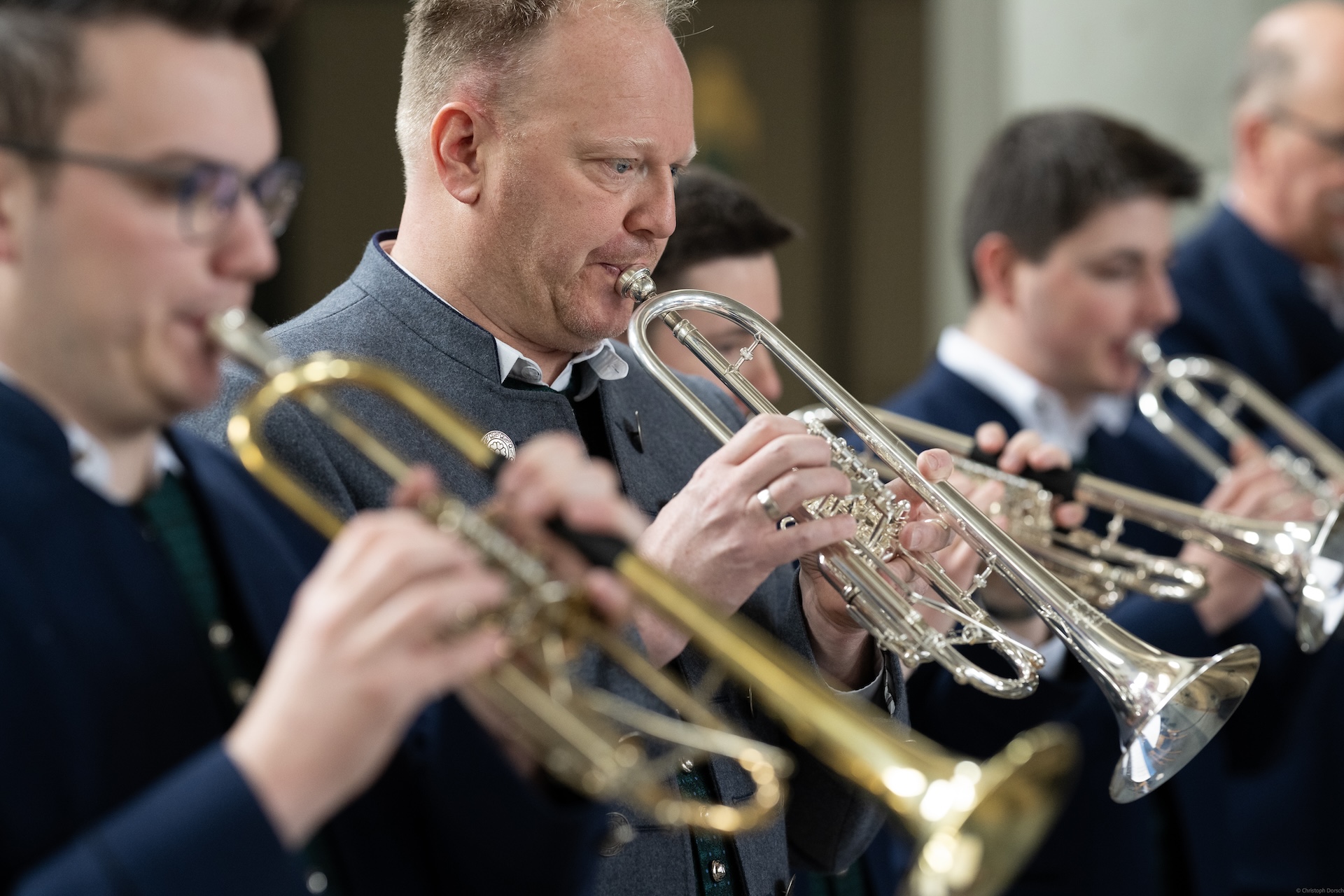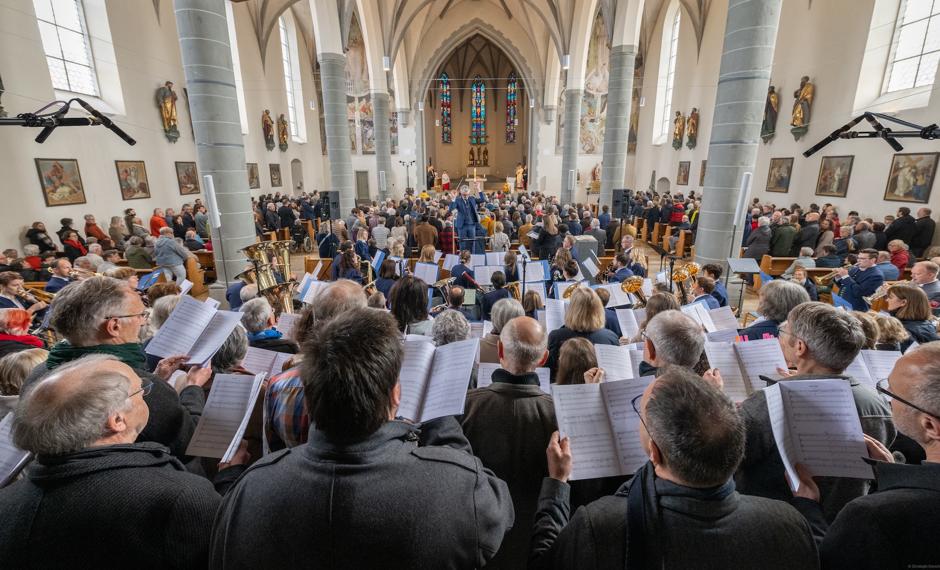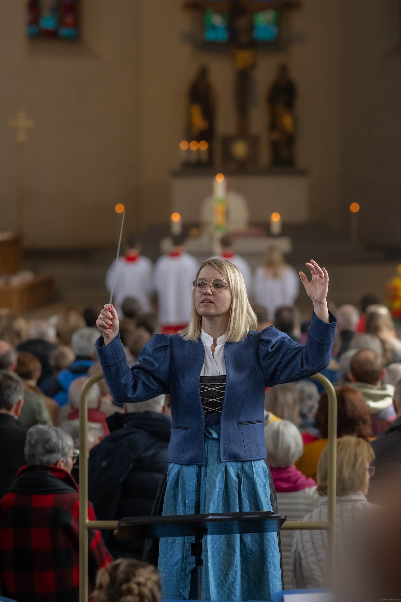 Am Ostersonntag betrat die Stadtkapelle musikalisches Neuland. Gemeinsam mit der Kantorei St. Martin, Kirchenmusikdirektor Franz Günthner und Solo-Sopranistin Tatjana Göppel, die ganz spontan für die erkrankte Gertrud Hiemer-Haslach eingesprungen ist, gestalteten wir mit der „Missa Katharina“ von Jacob de Haan den Gottesdienst zur Osterfeier um 10.15 Uhr. Es war uns eine besondere Ehre, dieses 2006 komponierte Werk in diesem feierlich-österlichen Rahmen vorführen zu dürfen und freuen uns schon auf das nächste Projekt mit der Kantorei St. Martin.