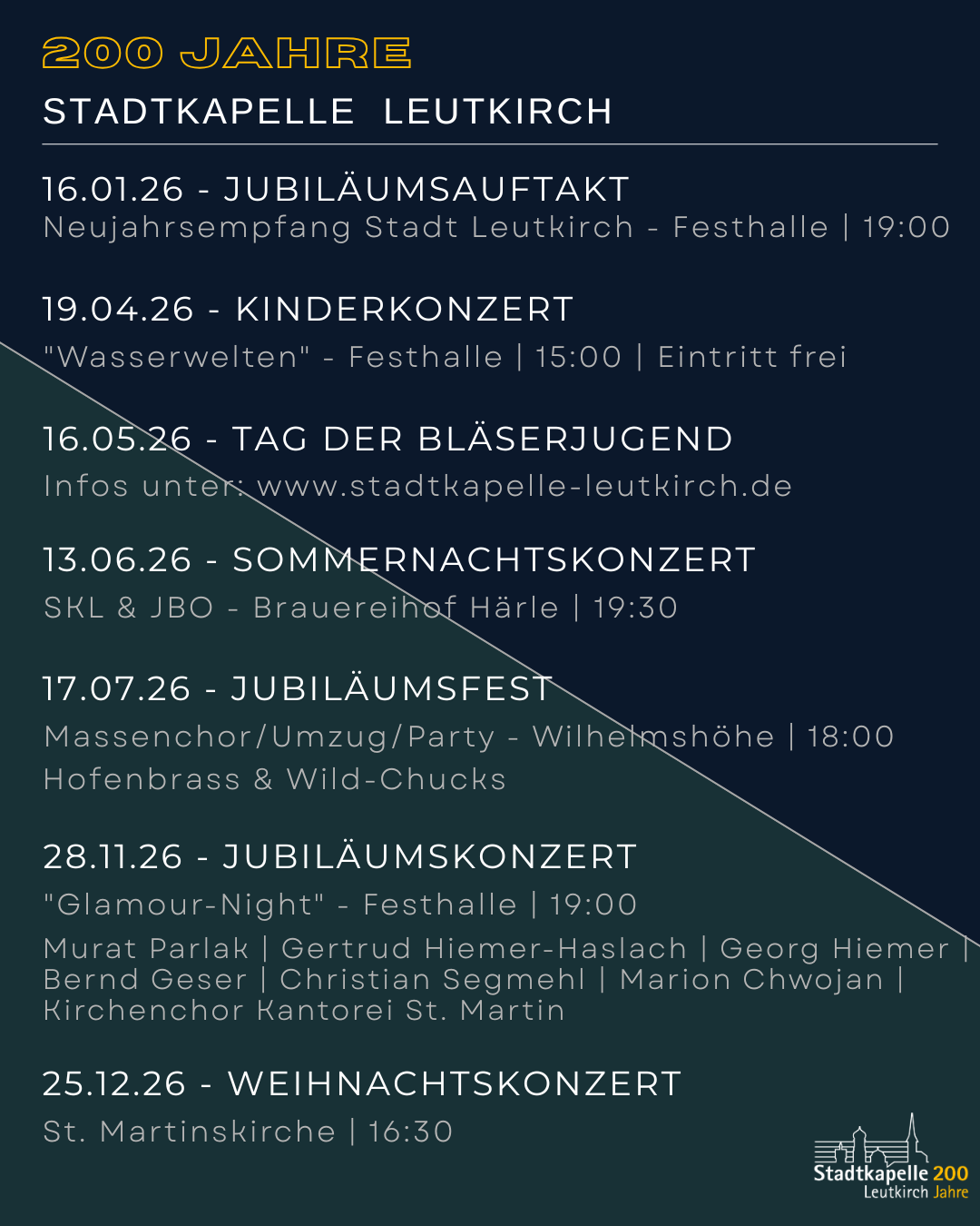 Auf ein schönes Jubiläumsjahr 🎉 freut sich Ihre Stadtkapelle Leutkirch