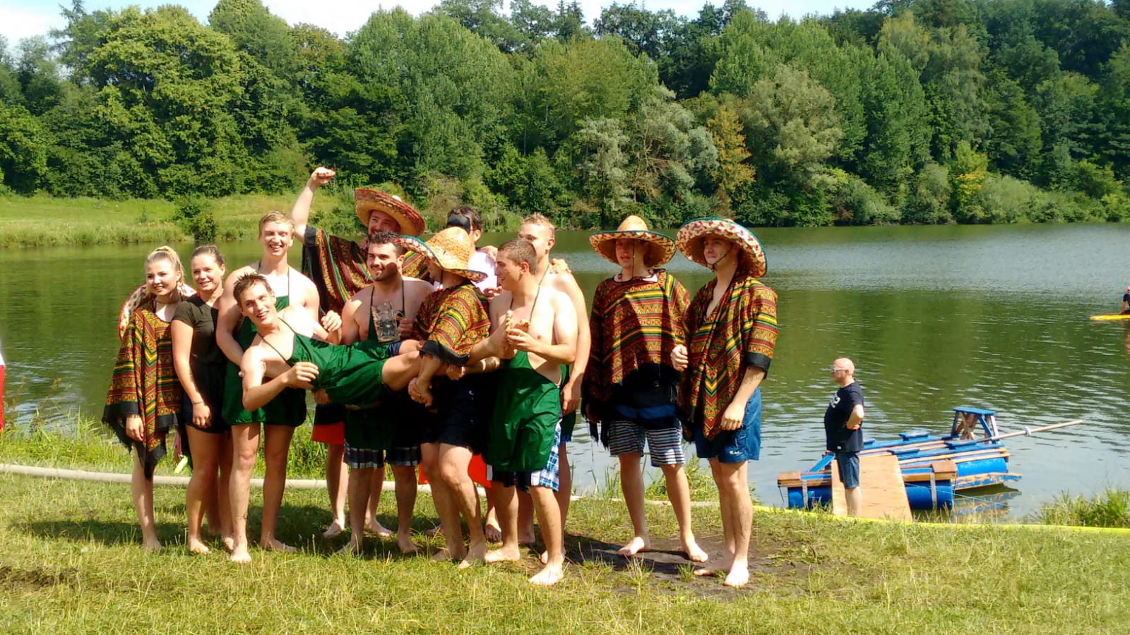 Es gilt, mit einem möglichst originellem Kostüm die gegnerische Mannschaft mit Stangen ins Wasser zu befördern - dabei befinden sich beide Mannschaften auf jeweils einem Floß.