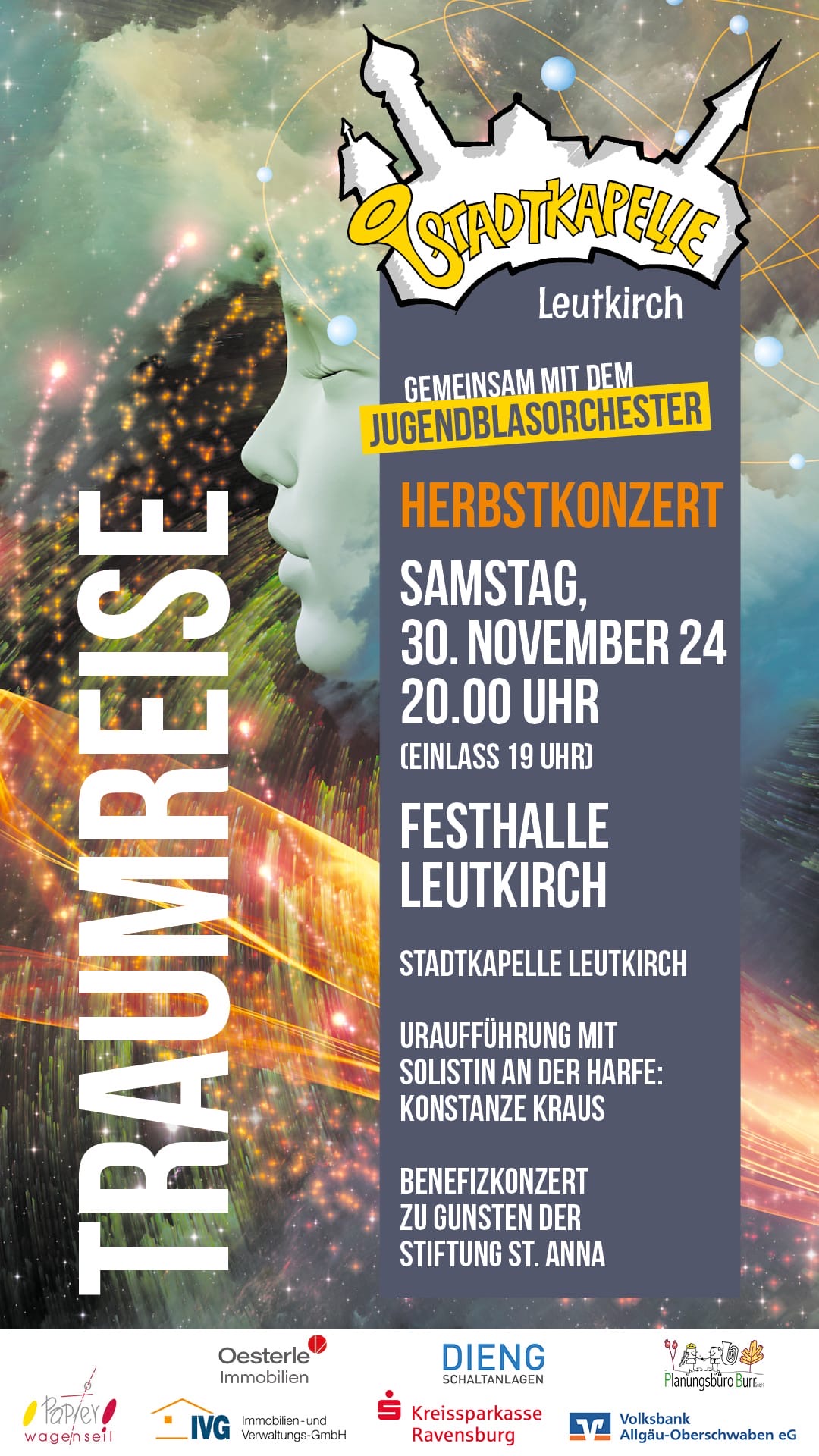 Unter dem Motto "Traumreise" steht dieses Jahr ein besonderer Konzertabend, traditionell gestaltet von der Stadtkapelle mit dem Jugendblasorchester. Bei Wikipedia findet man unter dem Begriff "Traum" folgende Erklärung: