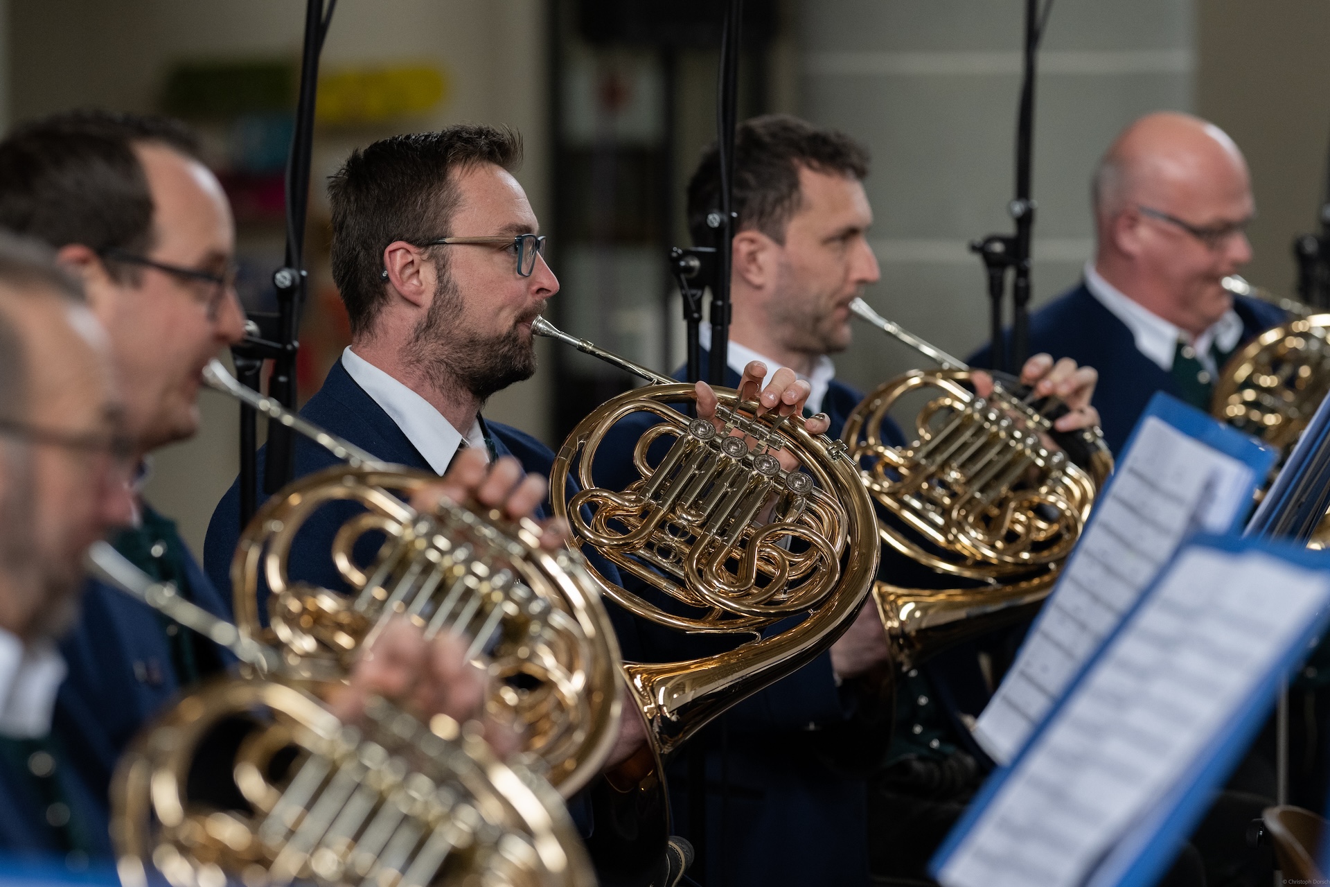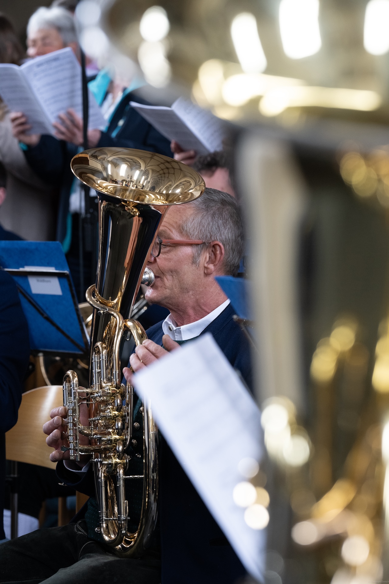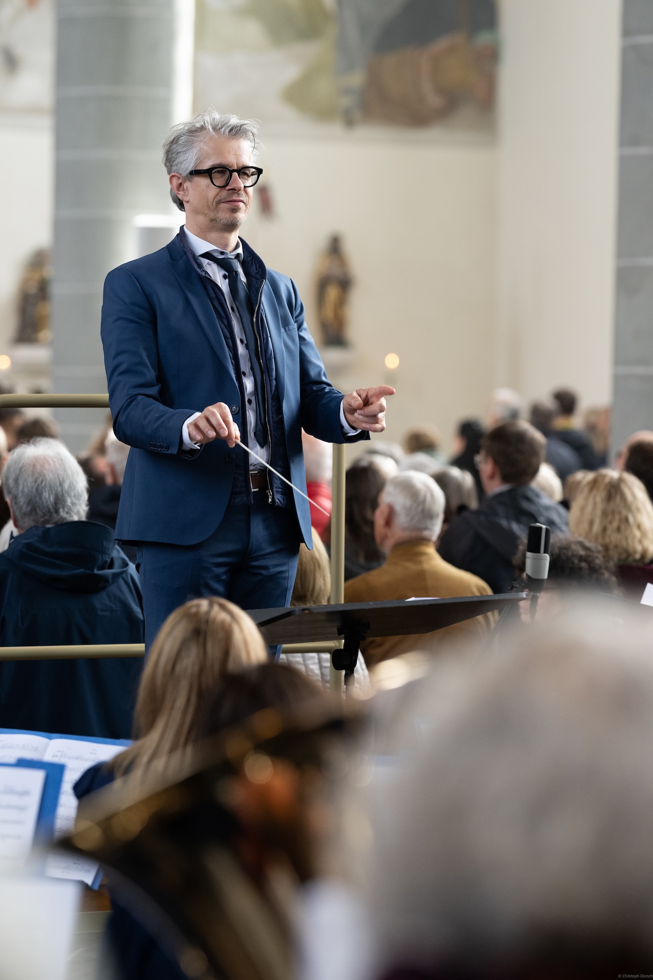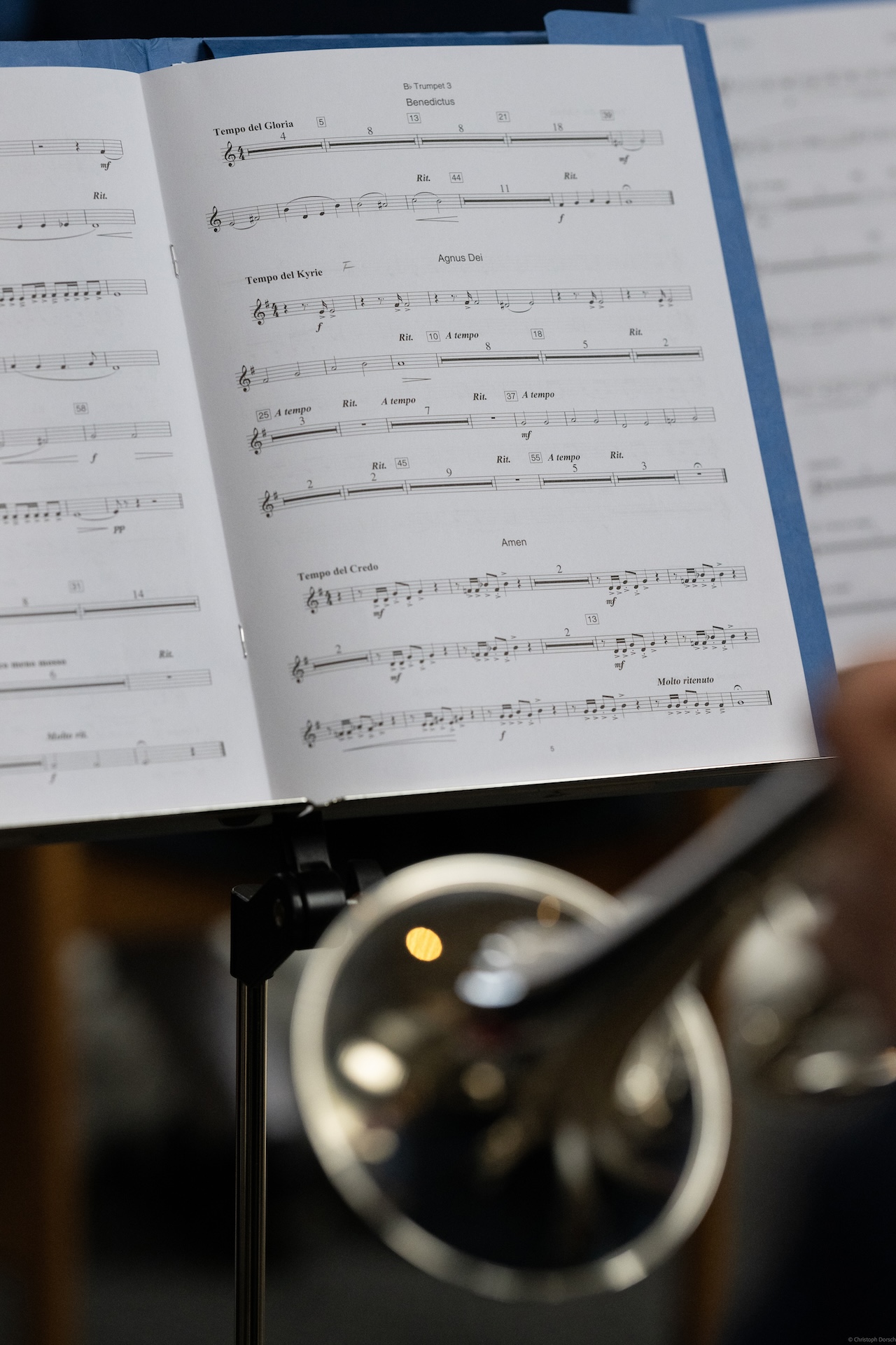 Am Ostersonntag betrat die Stadtkapelle musikalisches Neuland. Gemeinsam mit der Kantorei St. Martin, Kirchenmusikdirektor Franz Günthner und Solo-Sopranistin Tatjana Göppel, die ganz spontan für die erkrankte Gertrud Hiemer-Haslach eingesprungen ist, gestalteten wir mit der „Missa Katharina“ von Jacob de Haan den Gottesdienst zur Osterfeier um 10.15 Uhr. Es war uns eine besondere Ehre, dieses 2006 komponierte Werk in diesem feierlich-österlichen Rahmen vorführen zu dürfen und freuen uns schon auf das nächste Projekt mit der Kantorei St. Martin.