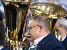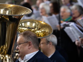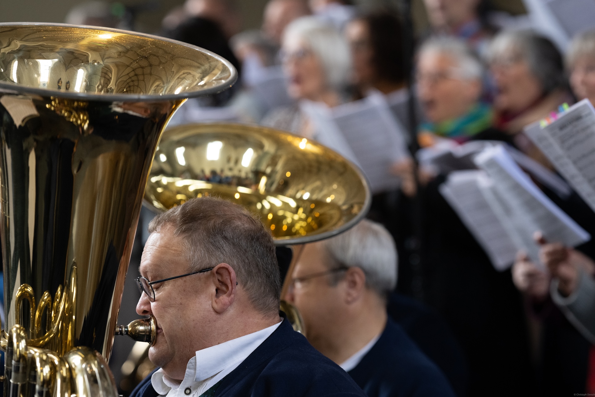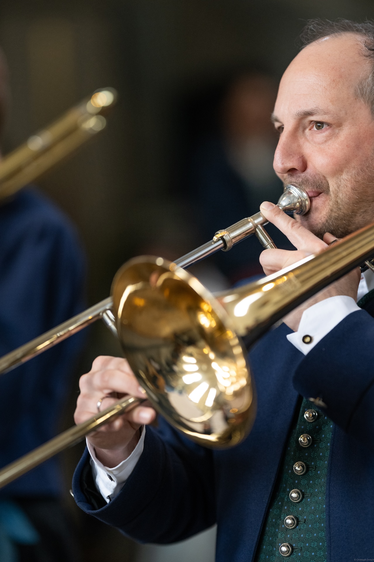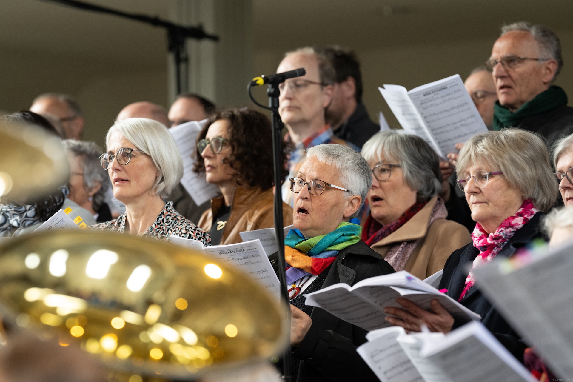 Am Ostersonntag betrat die Stadtkapelle musikalisches Neuland. Gemeinsam mit der Kantorei St. Martin, Kirchenmusikdirektor Franz Günthner und Solo-Sopranistin Tatjana Göppel, die ganz spontan für die erkrankte Gertrud Hiemer-Haslach eingesprungen ist, gestalteten wir mit der „Missa Katharina“ von Jacob de Haan den Gottesdienst zur Osterfeier um 10.15 Uhr. Es war uns eine besondere Ehre, dieses 2006 komponierte Werk in diesem feierlich-österlichen Rahmen vorführen zu dürfen und freuen uns schon auf das nächste Projekt mit der Kantorei St. Martin.