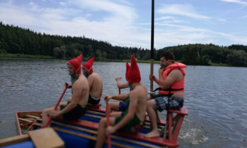 Es gilt, mit einem möglichst originellem Kostüm die gegnerische Mannschaft mit Stangen ins Wasser zu befördern - dabei befinden sich beide Mannschaften auf jeweils einem Floß.