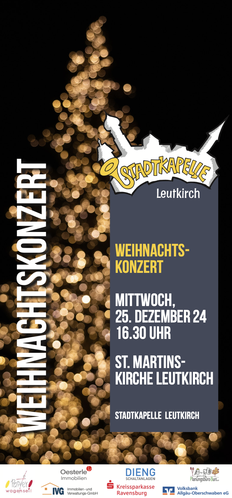 Traditionell spielen wir für Sie unser Weihnachtsstandkonzert in der St. Martins Kirche in Leutkirch.